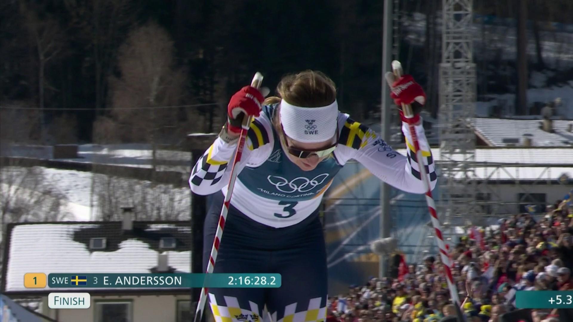 #JO2026 Ebba Andersson se venga. Tras sus dos caídas en el relevo, la sueca ganó la prueba de esquí de fondo de 50 kilómetros, prueba en la que las mujeres compitieron por primera vez en unos Juegos Olímpicos de Invierno. Varios miembros de la selección sueca habían sufrido resfriados en los últimos días, pero ella no. La francesa Cloé Pagnier terminó la carrera de resistencia en el puesto 13.