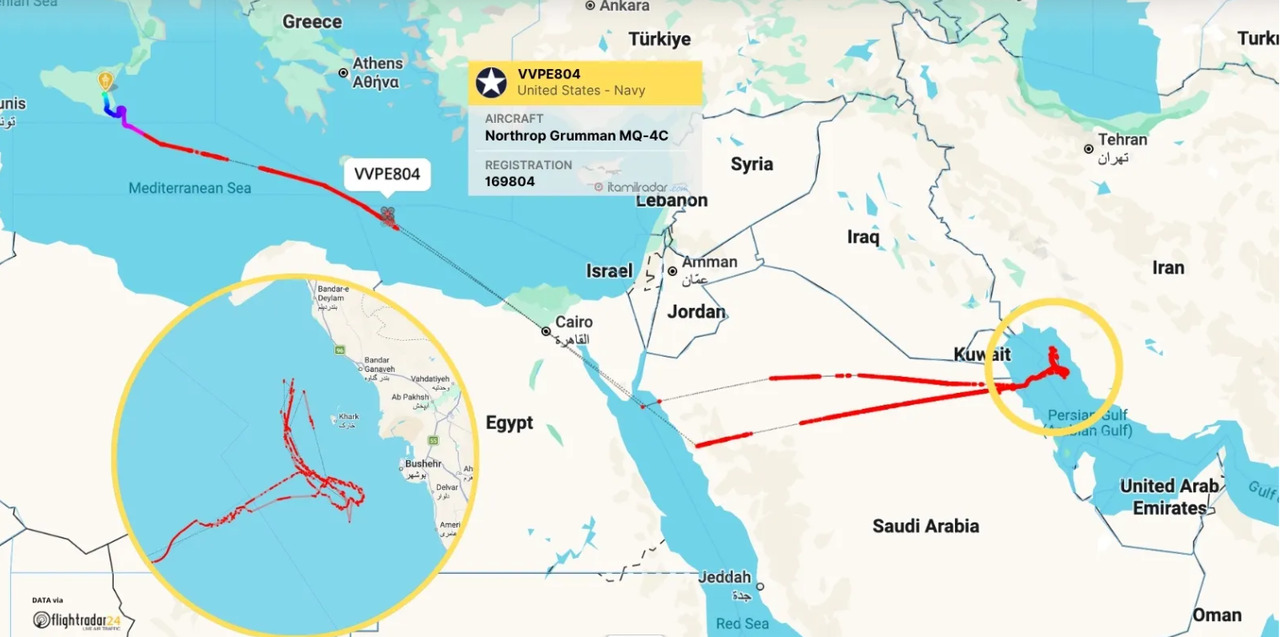 El análisis es por Radar Italiaque reconstruyó en mapas la ruta del Northrop Grumman MQ-4C Triton de la Armada estadounidense, un dron Hale (acrónimo de High Altitude Long Endurance, puede volar por encima de los 18.000 metros durante más de 32 horas) diseñado para la vigilancia marítima de muy largo alcance. El avión pilotado a distancia despegó de la base de sigonelaen el centro de una controversia política en Italia después de que Crosetto prohibiera a Estados Unidos utilizarlo para el paso de bombarderos que se dirigían a Irán para realizar ataques.