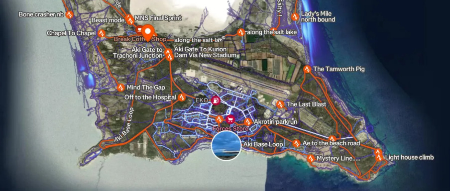 Si Teherán logró atacarlos utilizando datos de fuente abierta es una noticia que aún no se ha confirmado, pero en los primeros tres meses de este año, algunos registraron sus actividades dentro de las puertas del perímetro de seguridad de la base. Según The i Paper, un alto funcionario de inteligencia en la base chipriota registró una carrera hacia las áreas restringidas de Akrotiri, a lo largo de una ruta denominada “Sendero Natural de Akrotiri”. Otro funcionario de la base compartió una foto en la aplicación que parece mostrar el exterior de la ventana de un avión militar durante una operación. En Diego García, base de lanzamiento de operaciones en Medio Oriente, fueron identificadas 25 personas grabando pasajes en las rutas denominadas “Los estúpidos serán castigados” y “Sección 9 – Violación de seguridad”.